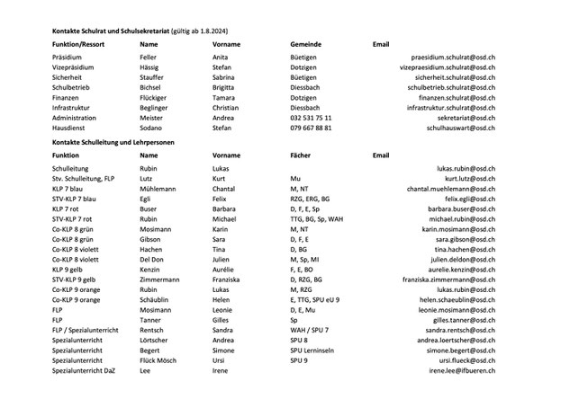 In dieser Rubrik erhalten Sie die Emailadressen für Schulleitung, Schulsekretariat, Hauswart, Lehrpersonen und Schulrat.